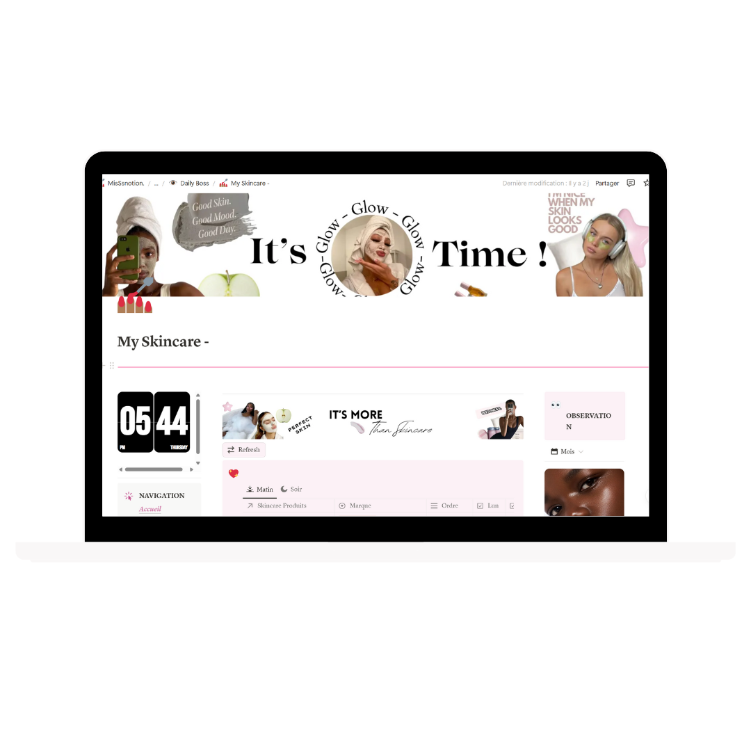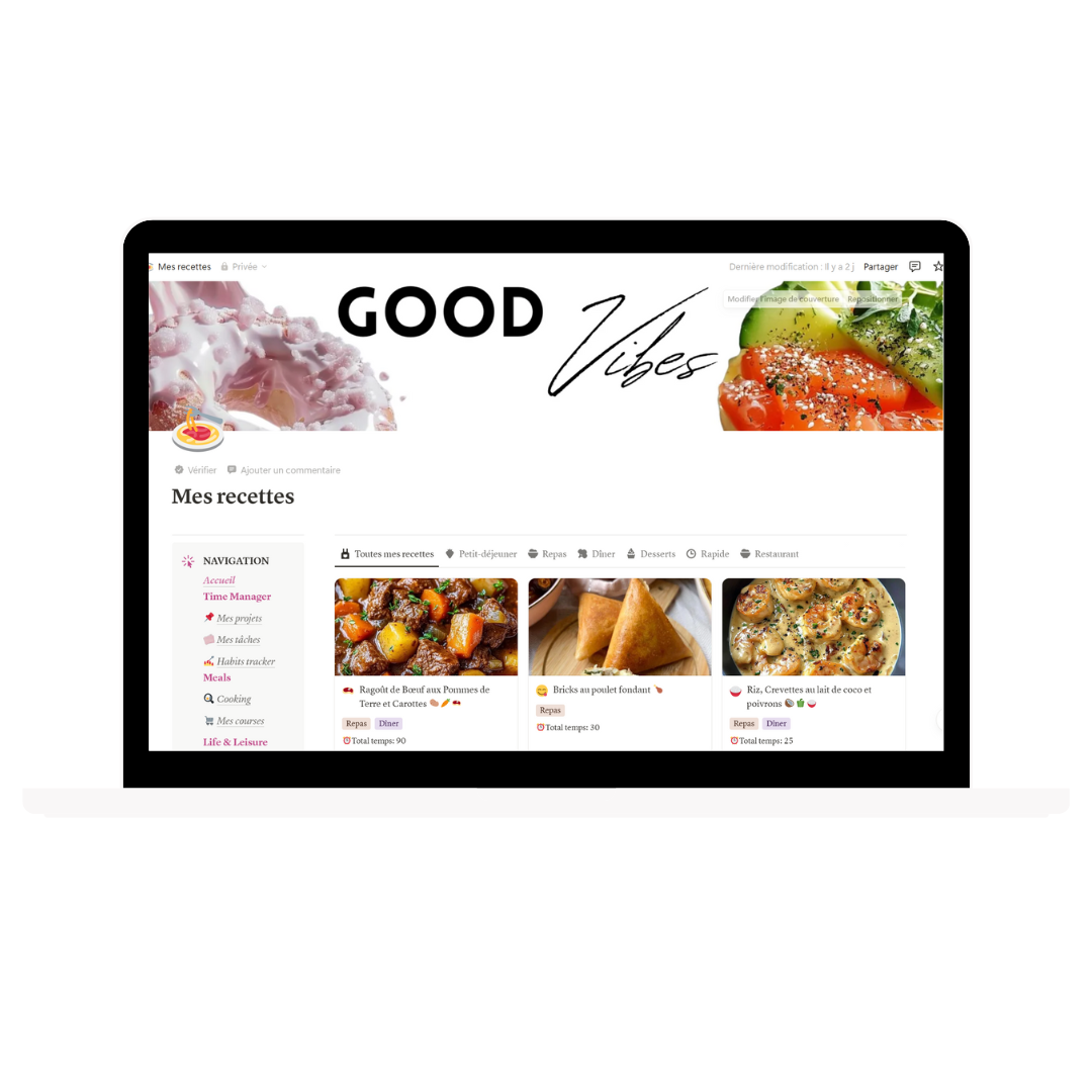 ➡️ Pour la vie perso Notion est très utile cela permet de suivre les objectifs, planifier les recettes, programme sportif, skincare et bien plus..